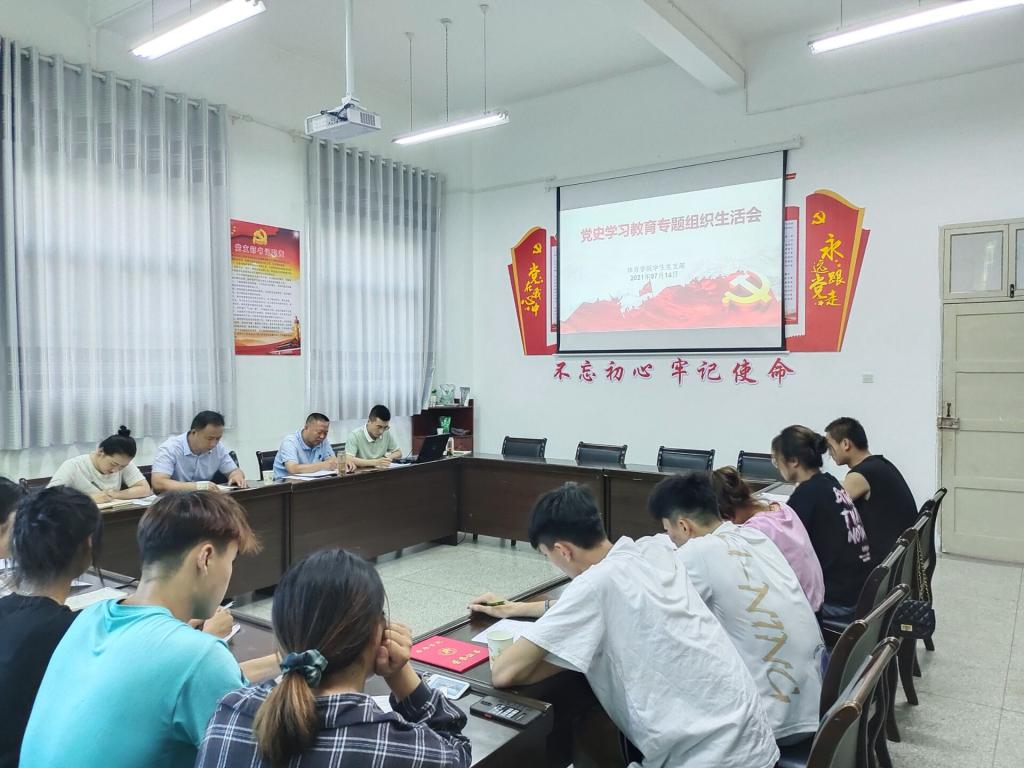 7月14日下午pp电子学生党支部在pp电子会议室召开党史学习教育专题组织生活会,支部全体党员参加了会议,党总支书记高立平、专职组织员王辉以普通党员的身份参加本次专题组织生活会,会议由学生党支部书记王立同志主持。