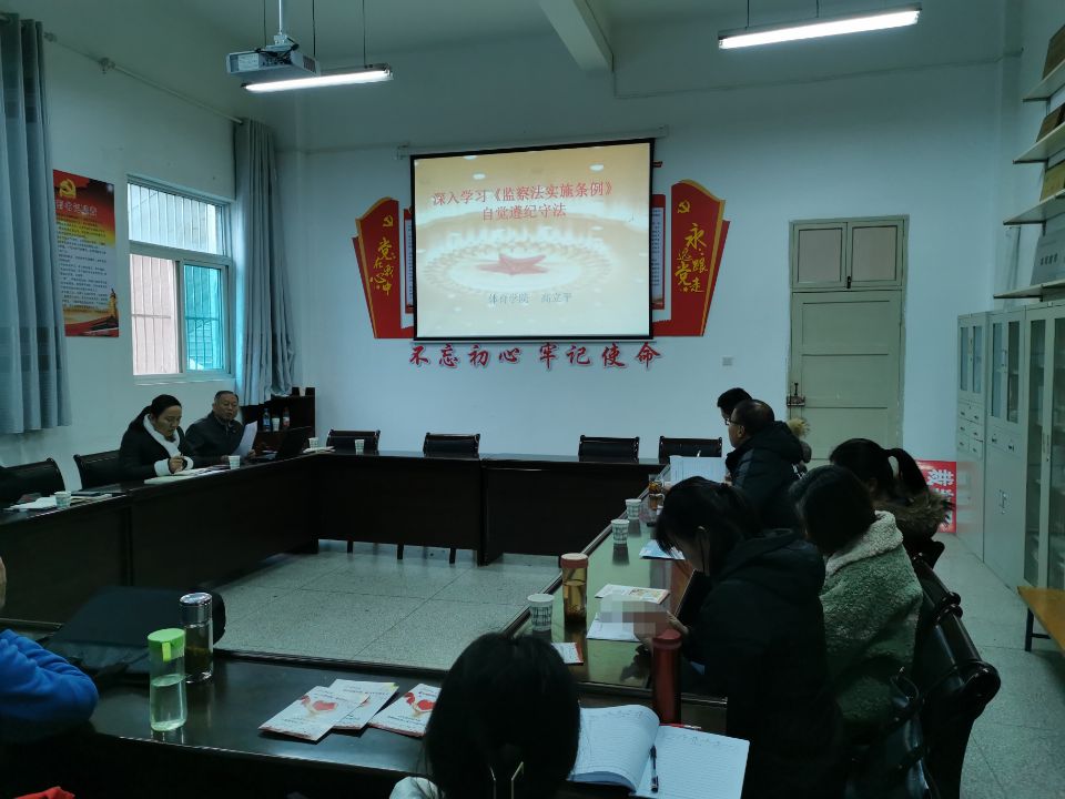 为深入贯彻习近平法治思想,落实宪法和监察法的精神。根据学校统一要求,12月8日下午,pp电子在体育馆一楼会议室开展监察法实施条例专题学习活动,pp电子全体教职工参加了学习。主讲人:pp电子党总支书记高立平。