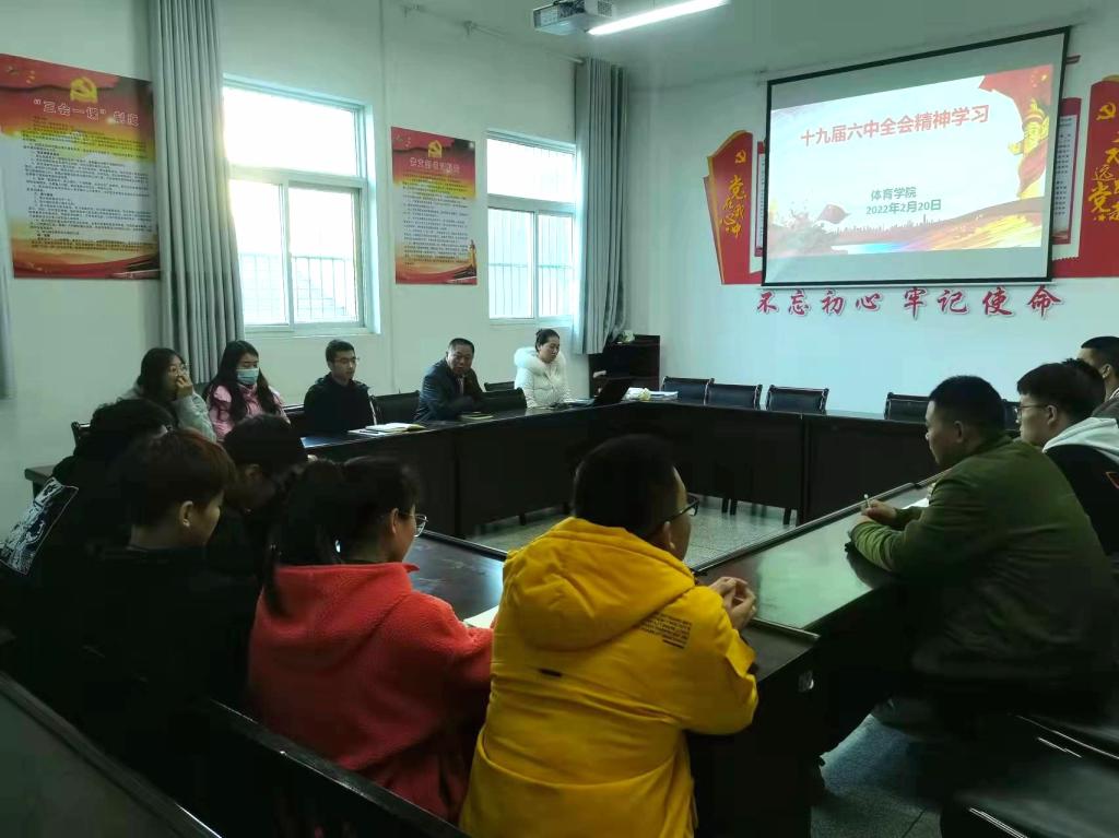 2月20号下午pp电子在体育馆1楼会议室召开“十九届六中全会精神学习专题会”,pp电子党总支书记高立平、学工办副主任王立、团总支书记康梦瑶、pp电子非毕业班学生党员、各团支部、学生会干部参加了会议,会议由王立主持。