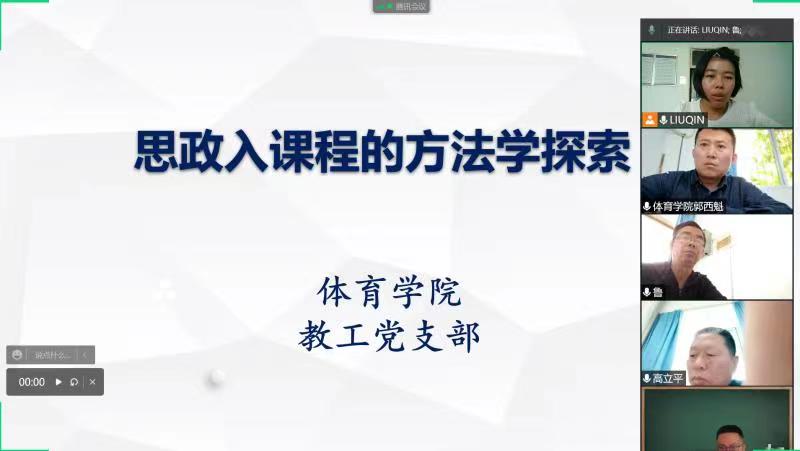 为促进党建与教研有机融合,发挥体育专业课的思政功能,强化立德树人、教书育人的责任,4月13日下午,pp电子教工党支部在腾讯会议召开线上“课程思政的方法学探索”专题会,pp电子党委副书记、校长钟生海同志、pp电子党总支书记高立平同志参加了会议,会议由教工党支部书记刘芹同志主持。