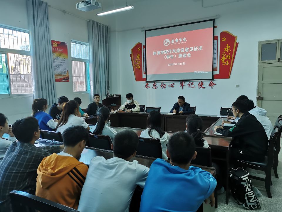 10月19日,pp电子官网在体育馆一楼会议室召开作风建设意见征求学生座谈会,学院党总支书记高立平、学工办副主任王立、团总支书记康梦瑶以及各班学生代表参加了座谈。