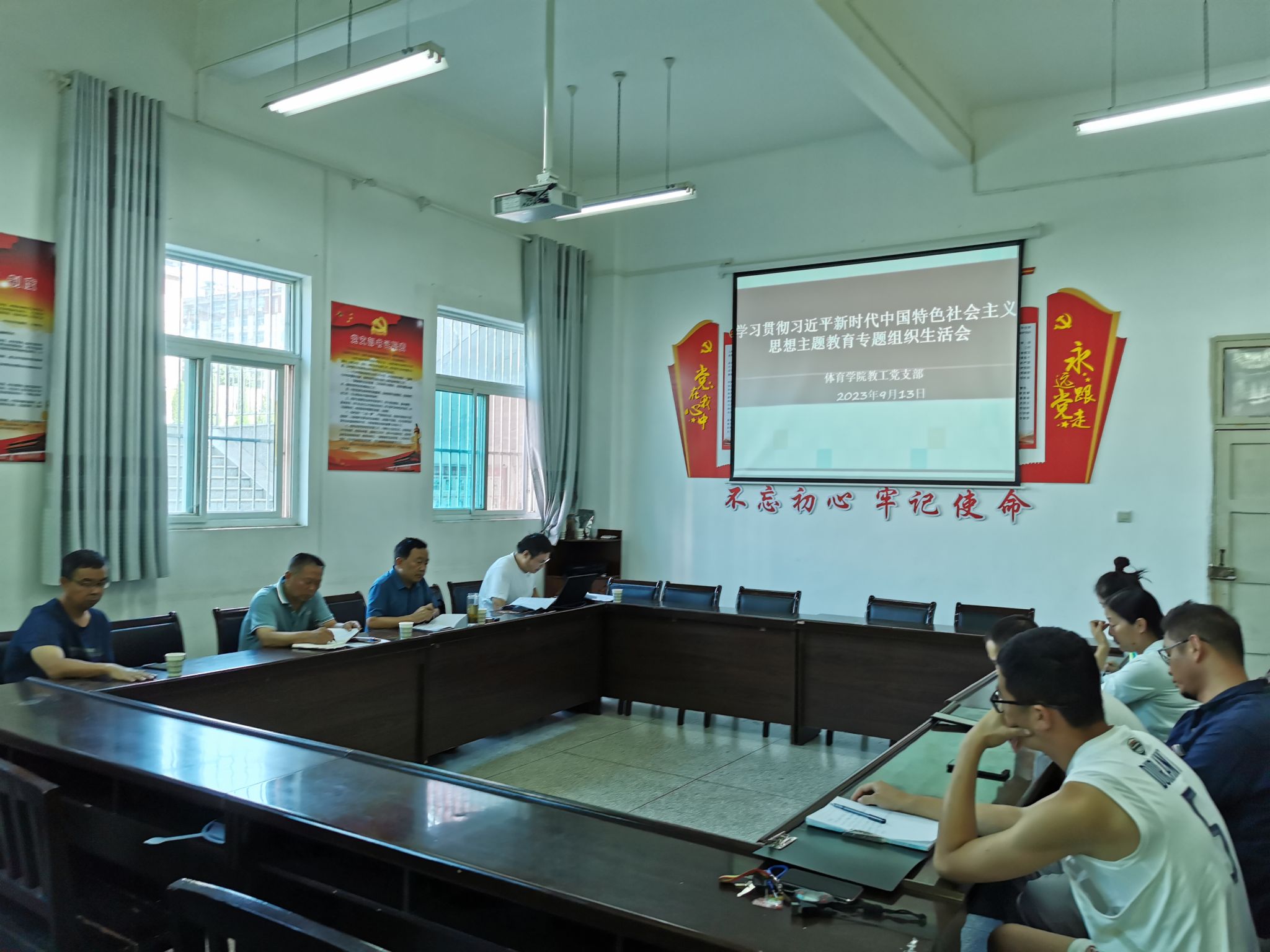 为深入贯彻落实党的二十大精神,严格执行党的组织生活制度,进一步发挥党员先锋模范作用,体育学院教工党支部于2023年9月13日下午召开了学习贯彻习近平新时代中国特色社会主义思想主题教育专题组织生活会,会议在pp电子会议室举行,本次会议由支部组织委员贾西栋主持,支部全体党员参加,pp电子校长钟生海以普通党员身份参加,pp电子党支部书记高立平也列席了本次会议。