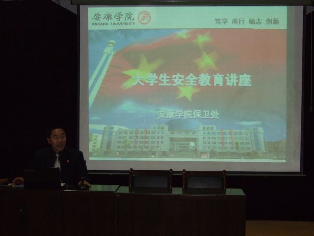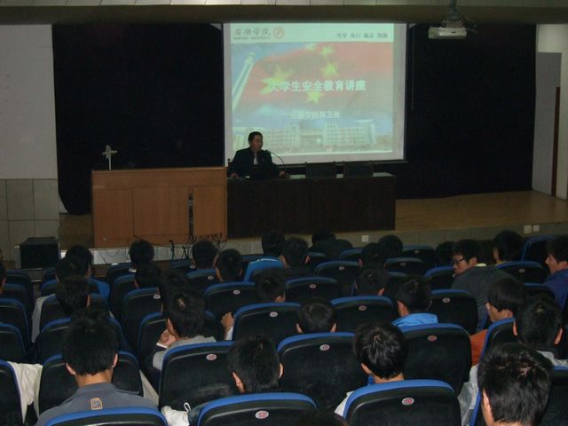 11月8日晚7:30-10:00,pp电子官网保卫处副处长王开忠老师在一号教学楼六楼报告厅为体育系和化学化工系2010级全体新生做了题为“大学生安全教育”的专题讲座。