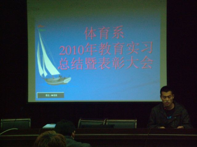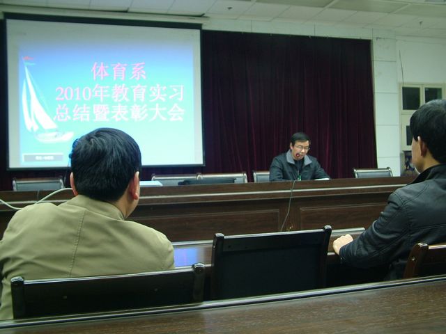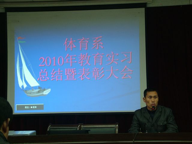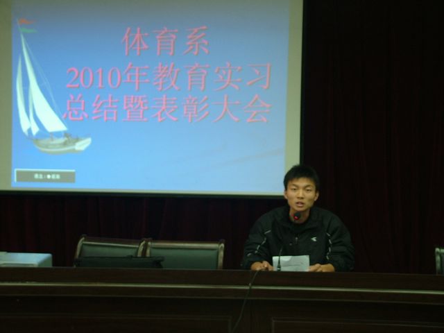 pp电子官网为期6周的2010年教育实习工作于11月18日顺利结束,为了了解基层中小学体育教学现状,反馈我系体育教育专业教学的实践信息,进一步改进教师的教学方法和学生的学习方法,体育系于11月26日下午4:30在图书馆六楼报告厅举行了首届教育实习总结暨表彰大会,系领导、办公室主任、教研室主任和体育系全体学生参加了大会。会议由体育系副主任鲁宗成主持。