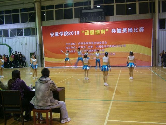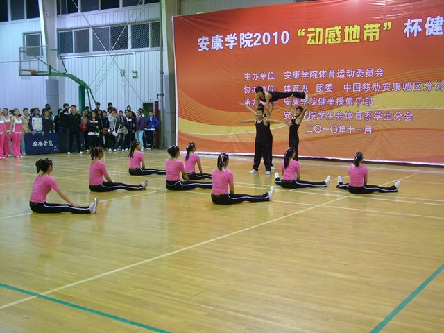 11月30日晚7点,由pp电子体育运动委员会主办,体育系、团委和中国移动安康城区分公司协办,健美操俱乐部、体育系学生分会承办的pp电子2010“动感地带”杯健美操比赛在体育馆举行。各院系共派出16支代表队130余人参加了比赛。比赛裁判由体育系教师担任。教务处处长单福东教授致开幕词,学院团委书记鲁延安宣布比赛开始。学院体育运动委员会成员、各院系党总支书记和部分教师参加了开、闭幕式并观看了比赛。比赛开、闭幕式由体育系副主任许宝林主持。
