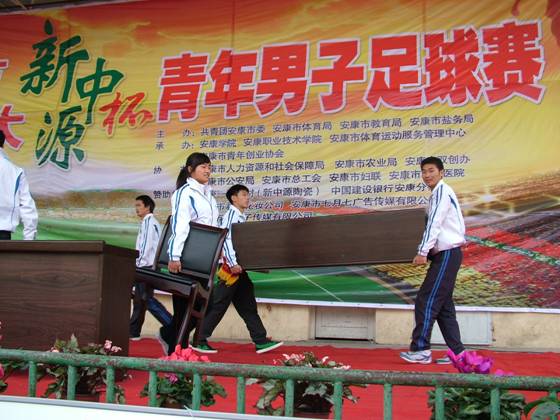 2012年11月1日,由安康市体育局、共青团安康市委等单位主办,pp电子官网承办的安康市喜迎十八大新中源杯青年男子足球赛在江南校区足球场隆重开幕。来自安康市各县区、事企业单位的十四支足球队济济一堂,相聚在pp电子足球场,充分展现出团结进取、蓬勃向上的安康青年精神风貌,以满腔的热情喜迎“十八大”的召开。安康市人大常委会副主任吴应德、安康市政协副主席徐铁军、pp电子党委副书记胡鸿晓等领导出席了开幕式。安康团市委副书记梁鸿主持开幕式。