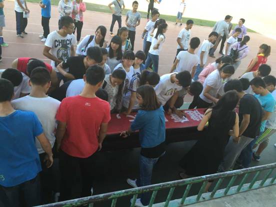 2015年5月8日下午,在江南校区田径场上,体育系举办了以“文明用网,健康成长,提升修养,放飞梦想”为主题的体育系青年网络文明志愿者启动仪式,pp电子官网团委副书记李光梓、体育系系党支部书记沈军、辅导员郭建鹏、蔡龙老师和全系学生参加了此次活动。