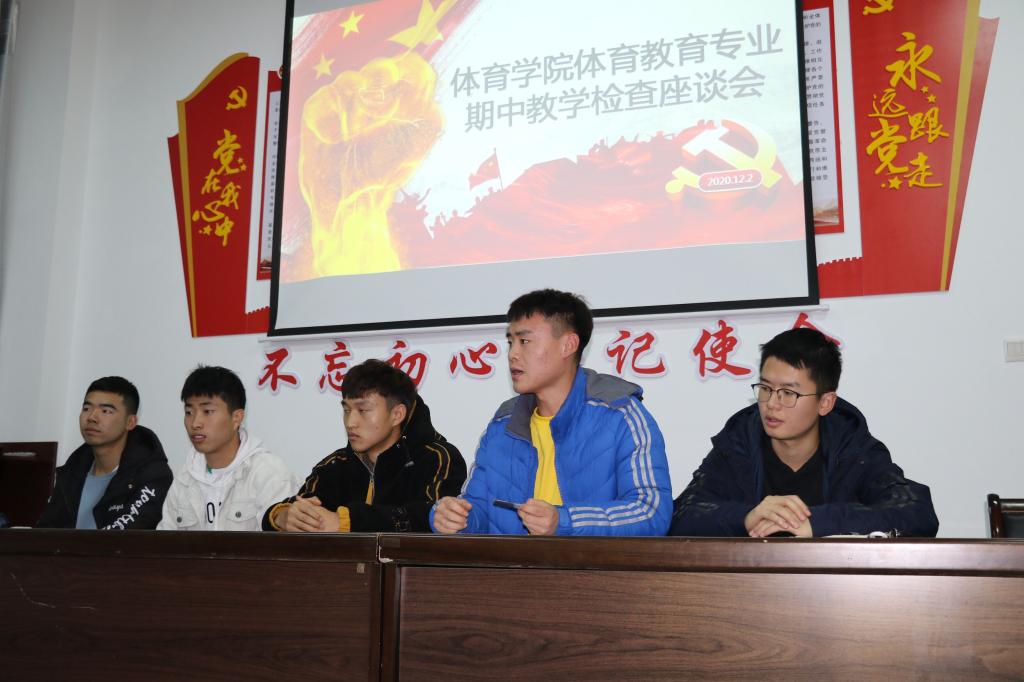 为了进一步提升体育教育专业教学质量,发现体育教学中存在的问题,2020年12月2日晚上19:00pp电子在会议室召开了期中教学质量座谈会。pp电子院长吕仙利、教学副院长郭西魁、体育系主任李靖、实验室中心主任刘芹、学工办副主任王力、团总支书记康梦瑶以及pp电子官网各班班长、学习委员、学生代表等二十余人参加了此次座谈会。会议由李靖主持。