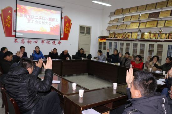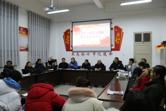 2021年1月7日晚,pp电子在体育馆一楼会议室召开二届四次教职工暨工会会员大会,pp电子28名教职工参加了本次大会,大会由pp电子工会分会主席郭西魁同志主持。