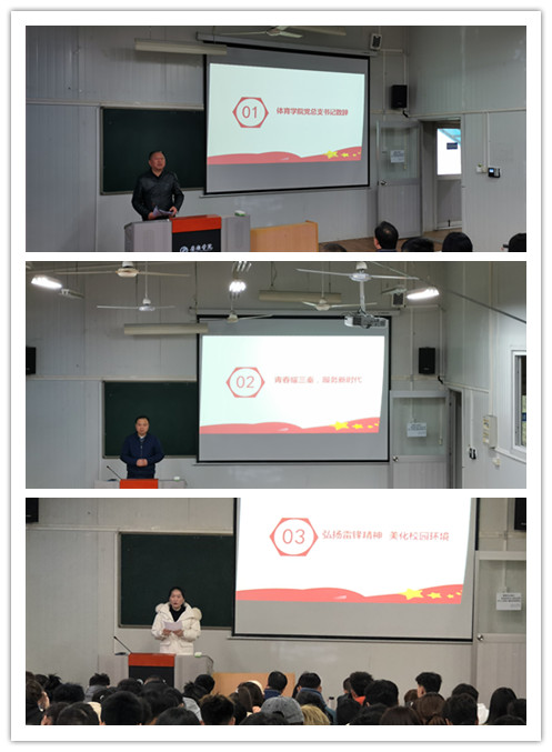 为响应校团委号召,带领pp电子官网师生学习雷锋精神,推动pp电子官网的精神文明建设,形成良好的校园文化氛围。3月10日,体育学院举行“青春耀三秦,服务新时代”学雷锋月活动启动仪式,学院党总支书记高立平、综合办主任郭建鹏、团总支学生会成员、各班团支书以及20级全体学生参加仪式。仪式由团总支书记康梦瑶主持。