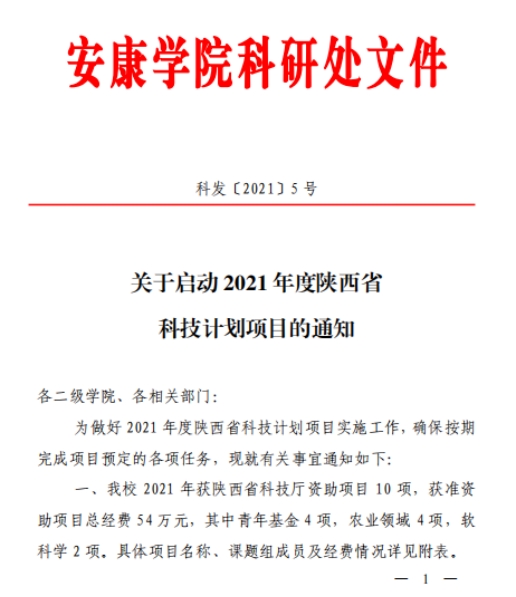 近日,陕西省科技厅公布了2021年立项文件(陕科发[2021]2号),pp电子获批1项一般项目(青年)-----《富硒绿茶影响大鼠线粒体氧化应激的机制》,项目编号:2021JQ-834。