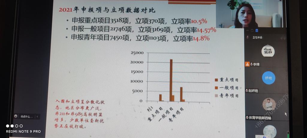 为提升pp电子教师科研水平,帮助教师做好各项社会科学项目的申报,2022年5月14日-15日,体育系组织pp电子全体中青年教师参加“全国高校社科基金项目申报暨中青年教师科研能力提升”专题研修班线上培训。