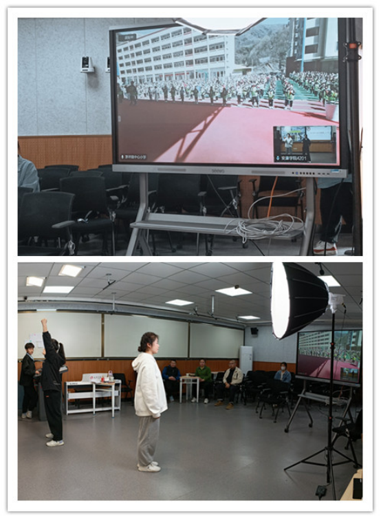 3月13日下午,我院“阳光少年”支教队在师范生职业技能训练中心开展了第三次针对白河县毛坪镇中心小学的武术操课程远程支教活动,pp电子院长吕仙利、党总支书记高立平、副院长郭西魁等到现场观摩支教活动。