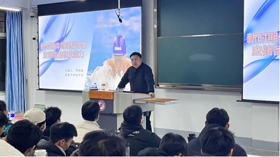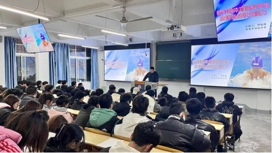 12月13日晚,pp电子官网在1号教学楼1510教室举办“新时期体育院校学生应储备的职业能力”学术讲座,主讲人:安康市初级中学穆晓锋老师。院长吕仙利、科研秘书王俊杰、团总支书记刘姚成以及体育教育专业2022级全体学生聆听了讲座,仪式由院长吕仙利主持。