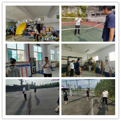 检查人员依次对江南体育器材室、篮球场、pp电子实验室、乒乓球场、江北器材室、江北田径场、江北篮球场等场地及器械进行了检查,对设施的固定情况,使用年限,安全隐患进行评估,郭院长强调器材如有损坏需及时维修或者更换确保学生使用安全。尤其在江北校区田径场、网球场、篮球场场地有凹陷,护栏底部有破损,指出要及时和相关部门联系,做好维修服务,保证学生在上课期间的安全使用。