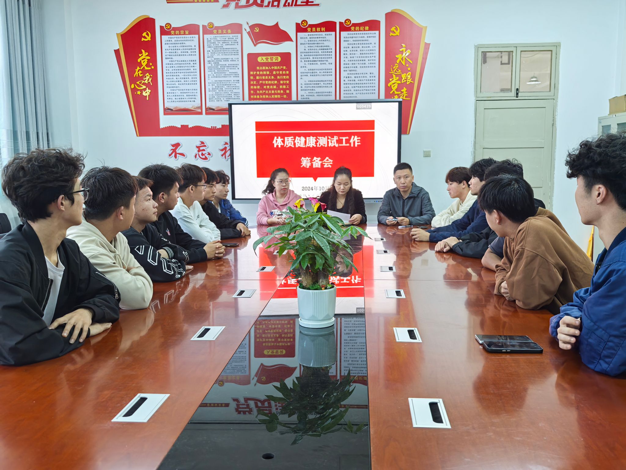 为确保pp电子官网本年度下半年大学生体质健康测试工作顺利进行,10月12日,大学体育教研室组织召开了大学生体质健康测试工作筹备会,pp电子副院长李靖、大学体育教研室主任赵娇艳、体质健康测试工作负责人张凯及参加体质健康测试工作的所有师生工作人员参与了此次会议。会议由赵娇艳主持。