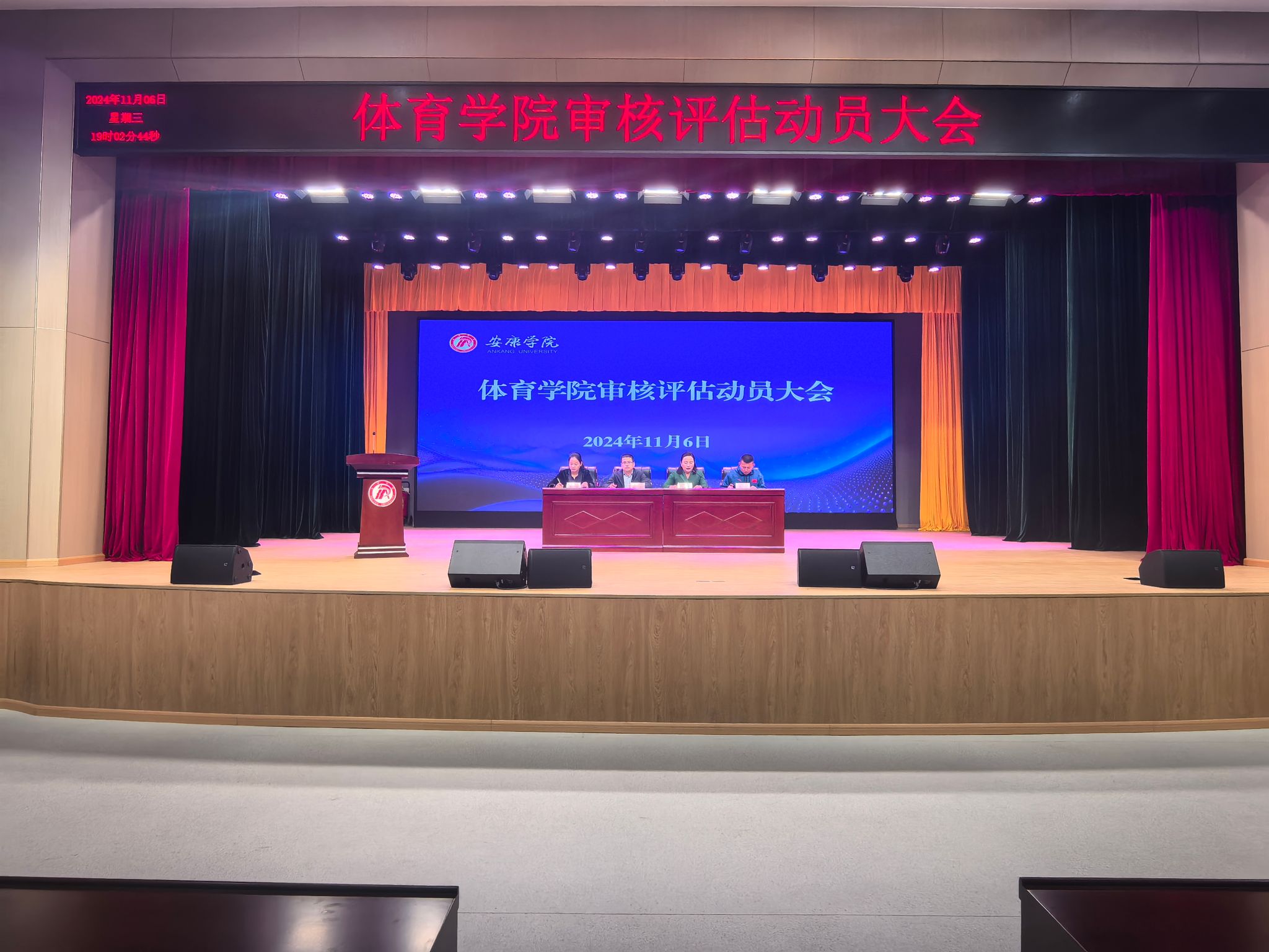 11月6日晚七点,pp电子在大礼堂召开审核评估动员大会。学院领导班子,全体师生参加会议。会议由党总支书记韩晔主持。