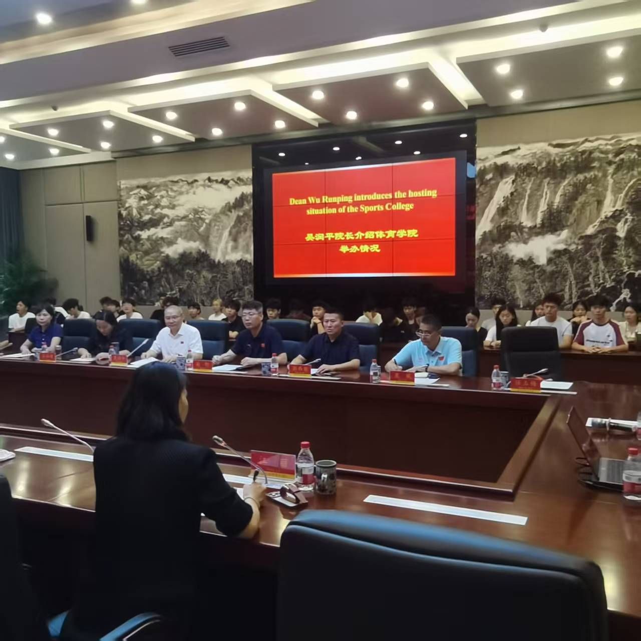 交流会上,成都师范学院pp电子院长吴润平对pp电子官网的到来表示热烈欢迎,并回顾了过去长期合作交流的历史,详细介绍了学院在体育教育专业建设、硕士点建设、中外合作项目开办以及“科技+体育”创新教育等方面的工作经验和成果。