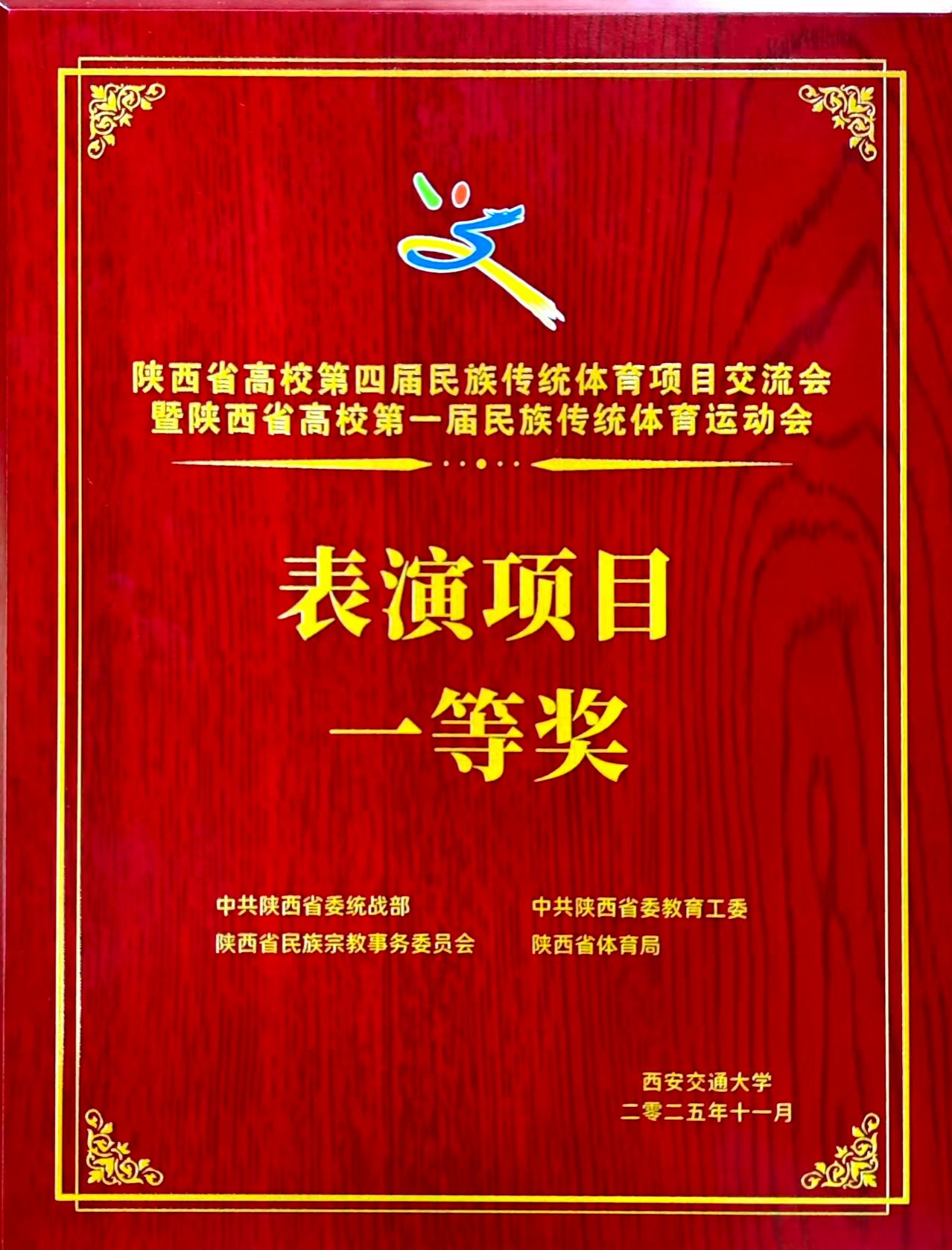 11月8日,由陕西省委统战部、陕西省委教育工委、陕西省民族宗教事务委员会、陕西省体育局联合主办的陕西省高校第四届民族传统体育项目交流会暨陕西省第一届民族传统体育运动会圆满落幕。pp电子官网武术队参加展演的太极扇项目获得一等奖,板凳龙项目获得优秀奖。