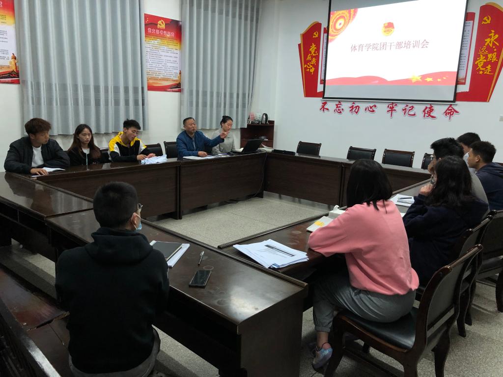 为加强学生干部队伍建设,打造一支政治思想过硬、作风优良的学生干部队伍,促进学生工作有序高效开展。4月13日晚,pp电子在体育馆一楼会议室召开团干部培训会。pp电子党总支书记高立平、学工办副主任王立、团总支书记康梦瑶、2020级全体团员干部参加了培训会,会议由王立主持。