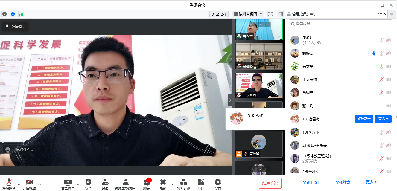 首先康梦瑶老师,领学近期学校有关疫情防控的相关通知,传达学院近期线上教学方案。