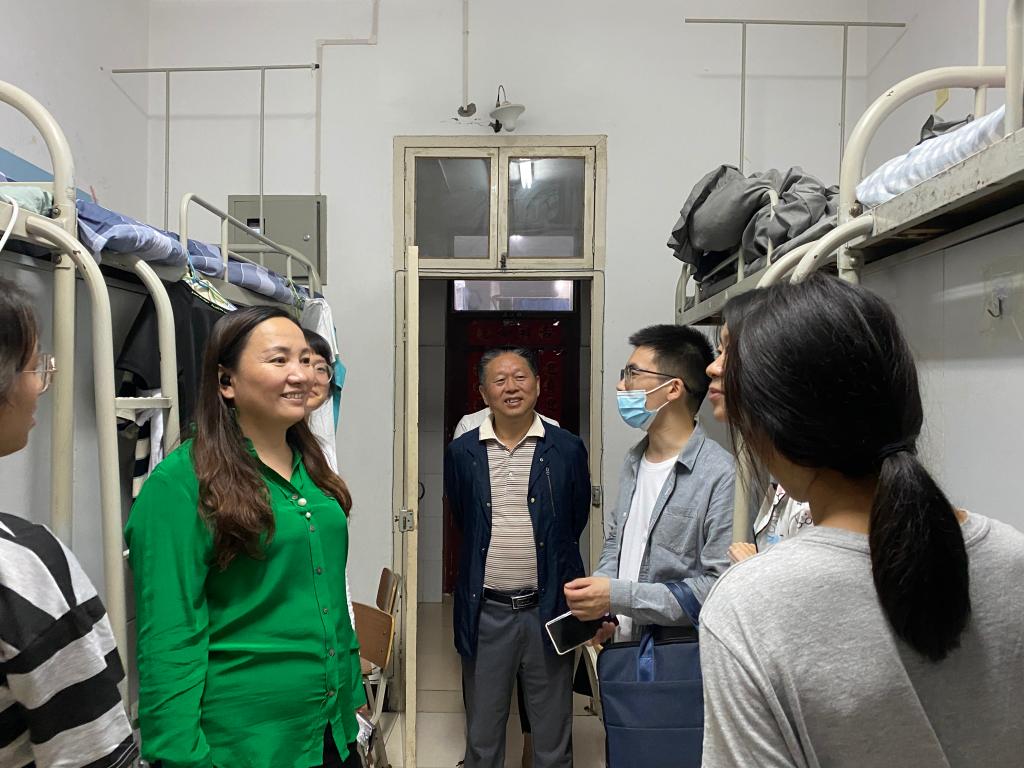 学院领导和老师们走进新生宿舍,与新生们亲切交流,细心询问他们到校后的住宿、就餐等方方面面的情况,了解新生入学后的需求,并特别叮嘱新生静态管理期间注意身体、做好防护,有困难及时向辅导员反映。