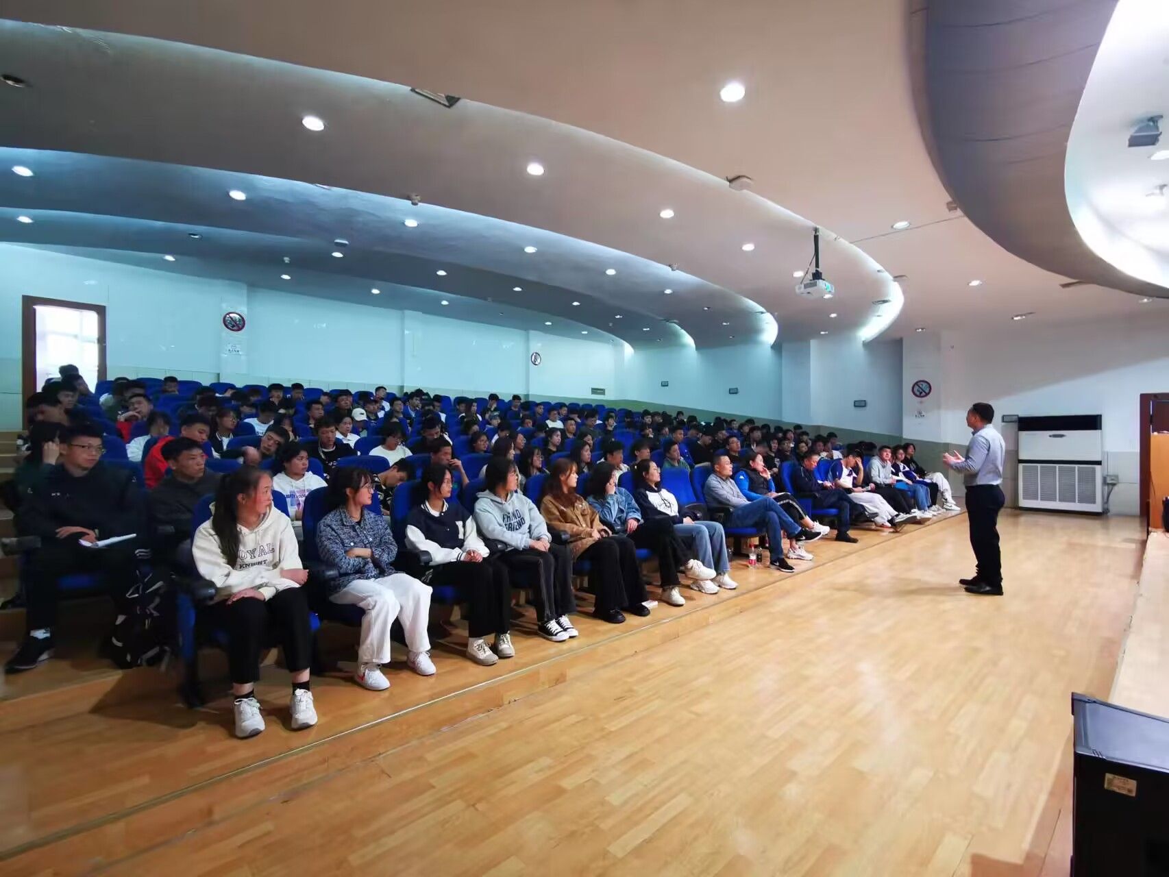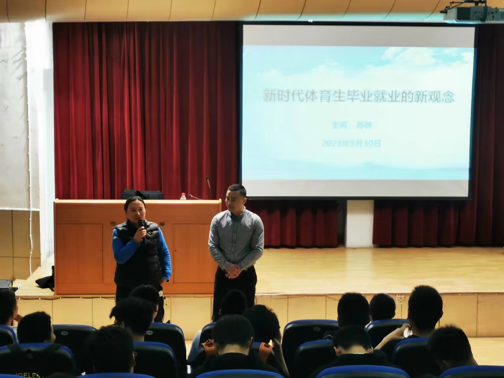 为进一步拓宽pp电子官网学生的就业思路,帮助体育生树立正确的就业、择业观念,3月30日下午,pp电子官网特邀请西安瑞德体育健身有限公司总经理苏林在江南校区一号楼6楼报告厅开展“新时代体育生就业的新观念”讲座。学院党总书记高立平,院长吕仙利与pp电子官网20级、21级、22级无课学生一起聆听了讲座。整个活动仪式由毕业班辅导员康梦瑶主持。