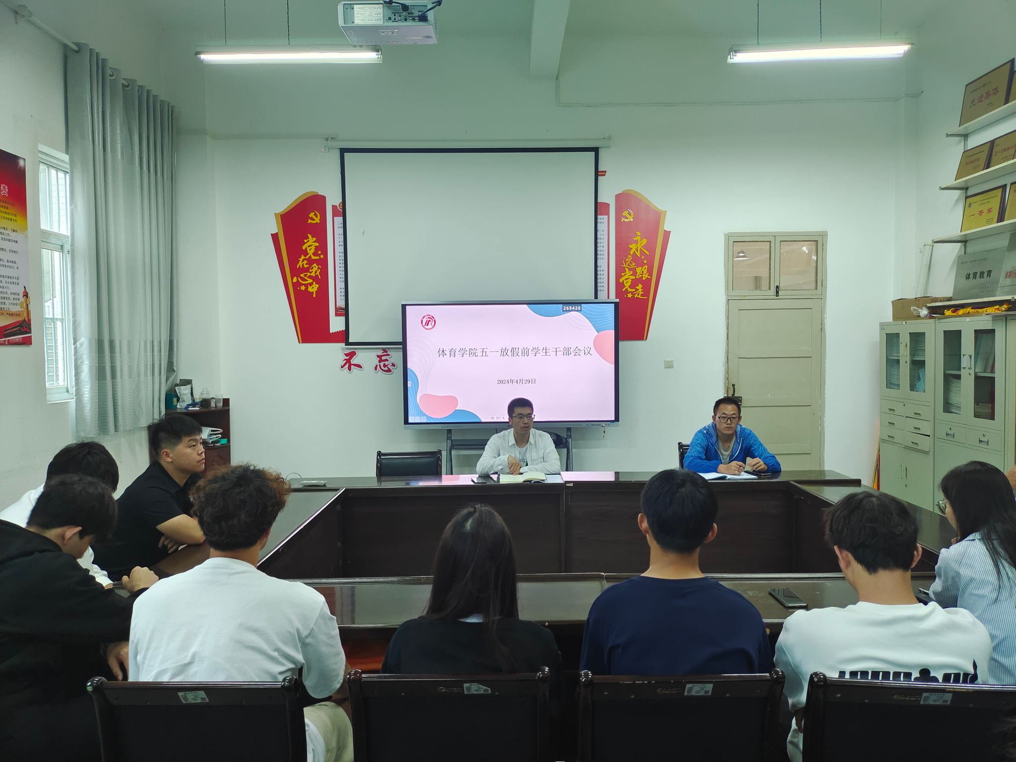 做好安排部署、夯实安全责任。按照学校安全会议要求,pp电子官网领导班子高度重视“五一”假期学生安全,要求各负责同志要强化安全意识、落实安全责任,对放假前的各项工作和假期值班做了详细安排。4月29日中午,pp电子官网学工办主任王立、辅导员刘姚成组织召开了学生干部工作会议。就“五一”放假前离返校登记、假期安全打卡、返校晚点名等工作做了详细安排。会议结束后,各年级辅导员分别组织了召开了主题班会。