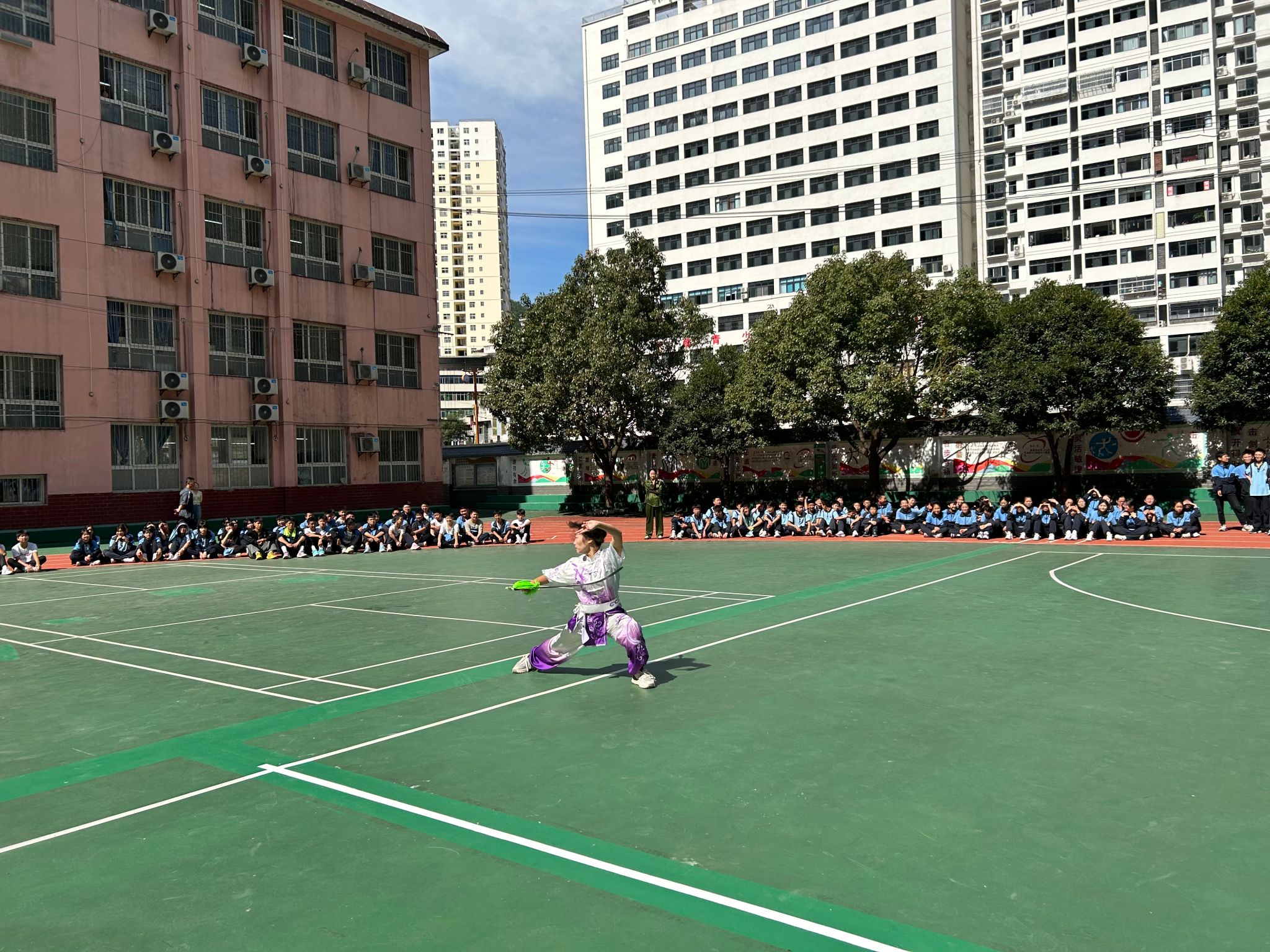 91日上午,高立平为镇平县初级中学师生做了安全教育方面的演讲,随后pp电子官网武术队同学将传统文化与校园健身相结合,进行了精彩的展演,并现场进行了八段锦的推广教学,赢得阵阵掌声。下午pp电子官网利用本次机会,前往钟宝镇金领村二组对困难学生进行了走访慰问。